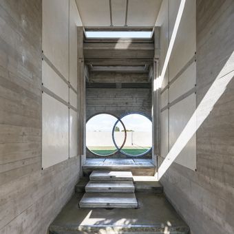La tumba Brion es un monumento funerario en Altivole, al noreste de Italia, que se extiende por una amplia zona con muros de hormigón, pasajes y una capilla. El agua fluye por canales y estanques alrededor de la cámara funeraria central, conectando diferentes secciones del recinto.