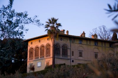 La Villa Ginori presenta una fachada principal orientada al sur con una logia en el primer piso y ventanas arqueadas que reflejan elementos arquitectónicos renacentistas.
