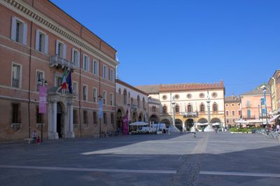 La Piazza del Popolo es una plaza rectangular en Rávena con edificios de estilo veneciano caracterizados por arcadas, pilares de piedra y balcones a lo largo de sus lados. La plaza alberga el Palazzo Merlato como edificio municipal, la Prefectura y varias instituciones bancarias dentro de estas estructuras históricas.
