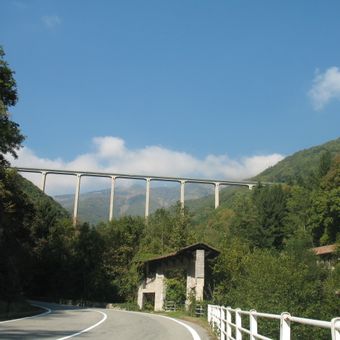El Puente Pistolesa se extiende 350 metros sobre el Valle Poala, conectando los municipios de Veglio y Mosso a una altura de 152 metros.
