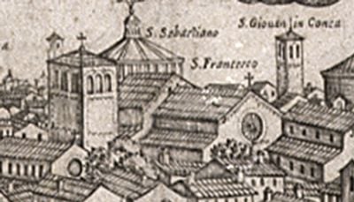 El edificio era originalmente conocido como Basílica di San Nabore en el siglo cuatro y más tarde se convirtió en centro de los franciscanos cuando lo asumieron en el siglo trece. Una reconstrucción importante en el siglo diecisiete transformó su apariencia, pero la historia de la estructura terminó con su demolición a principios de los años mil ochocientos.
