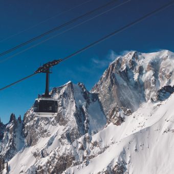 Skyway Monte Bianco es un teleférico en Courmayeur, en el Valle de Aosta italiano, que asciende más de 2152 metros verticales hasta Punta Helbronner. El recorrido atraviesa tres estaciones con cabinas giratorias que ofrecen vistas sobre los glaciares y cimas del macizo del Mont Blanc.