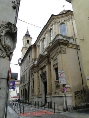 La iglesia fue reconstruida entre 1742 y 1745 por el arquitecto Bernardo Antonio Vittone, reemplazando un monasterio gótico del siglo XIII. Esta transformación marca el cambio de la arquitectura medieval a la barroca en el sitio.