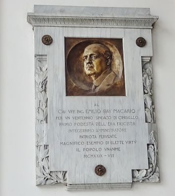 Lapide commemorativa a Emilio Baj Macario, monumento commemorativo di Cinisello Balsamo