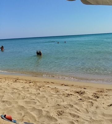 La playa se extiende 1300 metros por la costa jónica de Sicilia, con arena dorada fina y aguas mediterráneas transparentes.