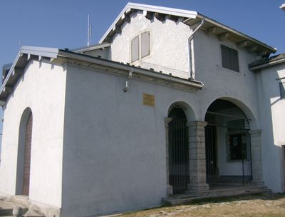 Shrine of the Beata Vergine del Bisbino, marian sanctuary in Monte Bisbino, Cernobbio, Como, Italy (church and bell tower)