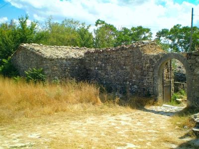 El conjunto arquitectónico comprende tres edificios separados: una granja fortificada con patio central, una taberna rectangular y una casa rural modesta.