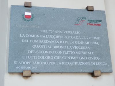 Plate to the bombing of the Lucca station, slab in memory of the bombing of January 6, 1944 and of the 24 victims