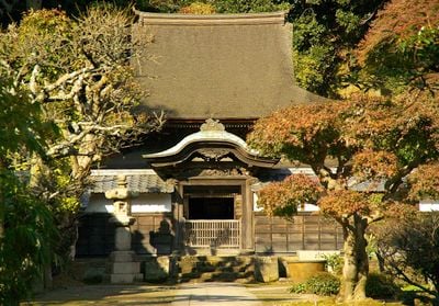 El templo Engaku-ji se extiende por una ladera boscosa con 18 edificios dispuestos en forma lineal, con arquitectura y jardines japoneses tradicionales.