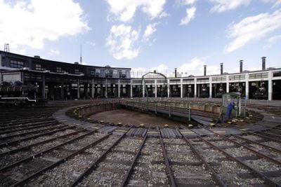 El museo alberga 53 vehículos ferroviarios, entre ellos locomotoras de vapor antiguas expuestas en un depósito circular construido en hormigón armado.