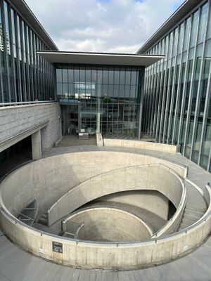 El Hyōgo Prefectural Museum of Art es un museo de arte en HAT Kobe que exhibe obras de artistas japoneses e internacionales. La arquitectura emplea hormigón visto, superficies de agua y luz natural para conectar varias salas de exposición en diferentes niveles.