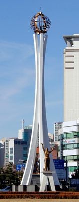 Ulsan Industrial Center Monument, Monumento conmemorativo en la rotonda Gongeoptap, distrito Namgu en Ulsan, Corea del Sur.