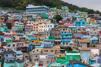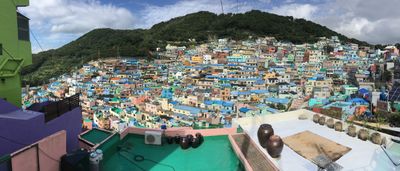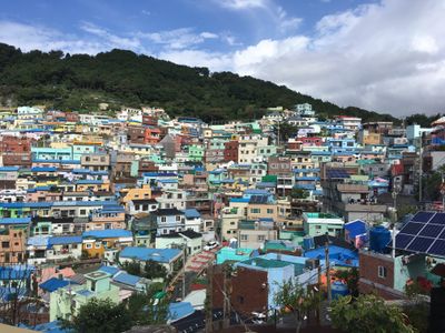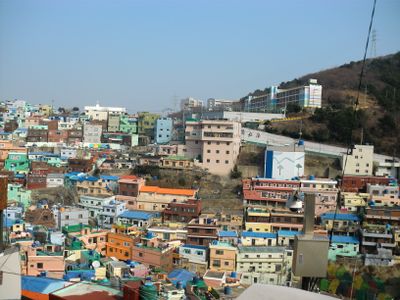 Gamcheon Culture Village es un barrio construido en una ladera en Busan donde casas de colores se apilan una sobre otra. Un sistema de callejones estrechos y escaleras conecta diferentes niveles y crea caminos que serpentean entre las estructuras.