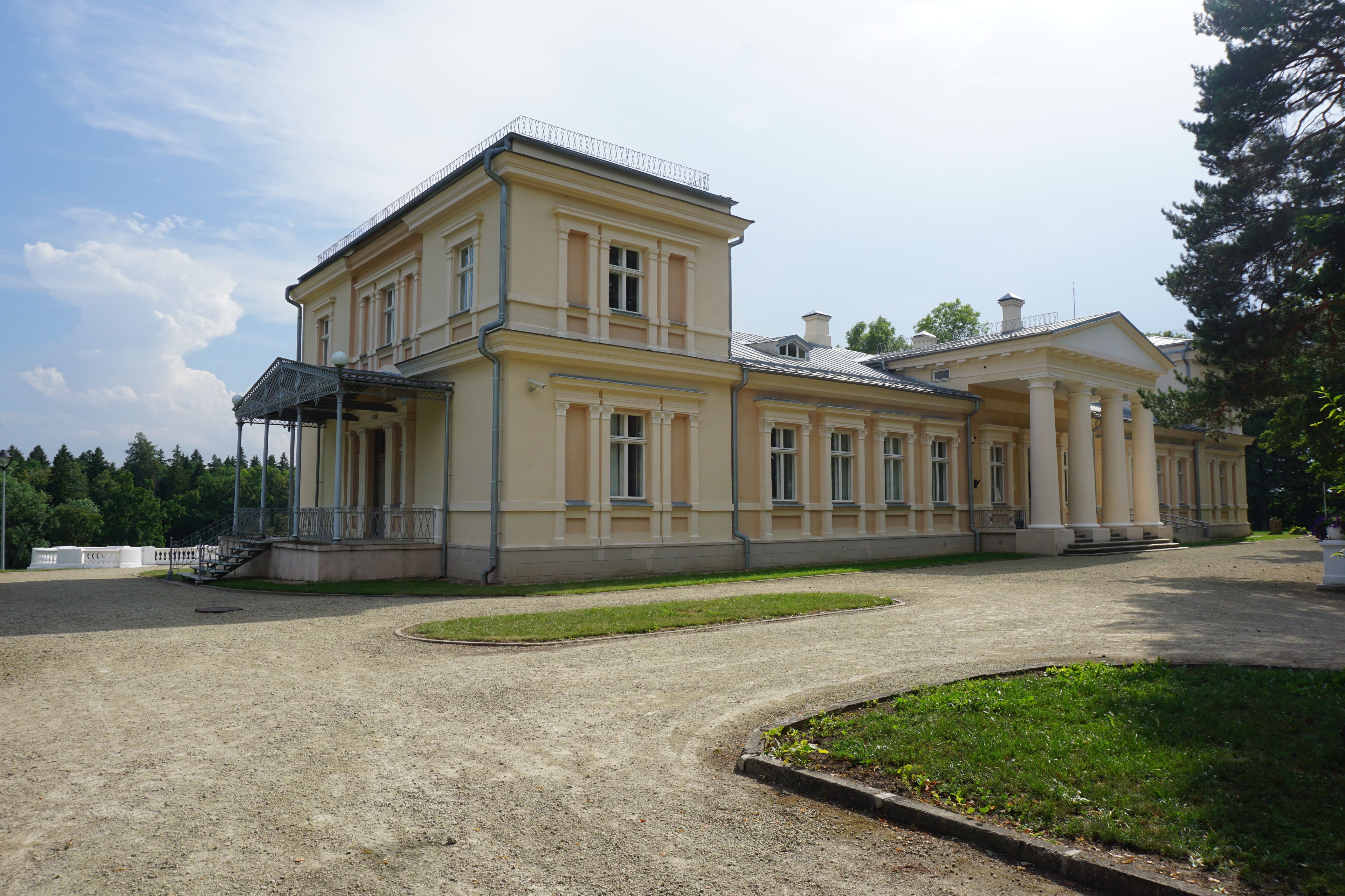 Los terrenos de la mansión incluyen el abeto más grueso de Lituania, que se alza como monumento natural dentro del parque de la finca.