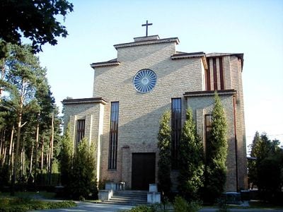 Iglesia de Cristo Rey, Iglesia católica funcionalista en Meža Prospect, Letonia.