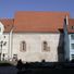 El edificio de piedra se encuentra en la calle Skārņu 10/12, mostrando elementos arquitectónicos típicos de estructuras religiosas del siglo XIII.