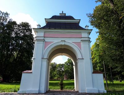 La puerta restante de la Mansión Linde permanece como estructura arquitectónica barroca de 1767, marcando la entrada a los antiguos terrenos.