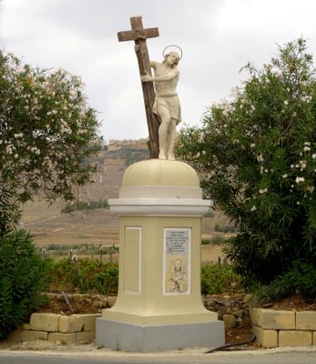 Statue of Christ embracing Cross and relief of the Madonna of Sorrows, statue in Victoria, Malta
