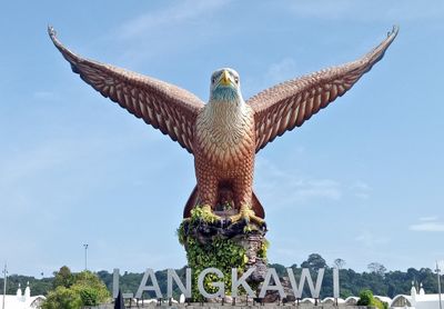 El nombre Langkawi proviene de la palabra malaya 'helang' que significa águila, representada por la estatua como símbolo de la identidad isleña.