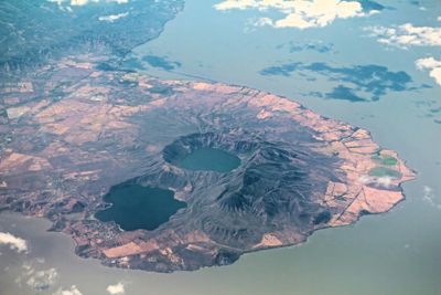 La última erupción del volcán Apoyeque sucedió hace 4,000 años, creando una caldera profunda que ahora contiene una laguna de 400 metros de profundidad.