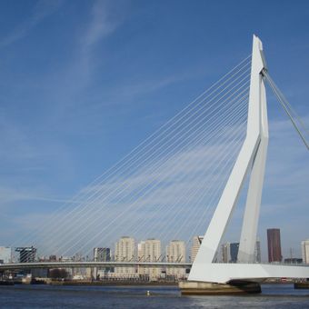 Con el nombre del erudito renacentista Desiderio Erasmo, la estructura del puente semeja un cisne, reflejando el compromiso de Rotterdam con la expresión arquitectónica.