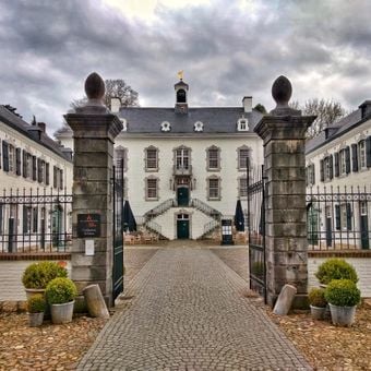 El castillo en forma de U se extiende por 18 hectáreas de terreno cerca de la frontera tripartita entre los Países Bajos, Bélgica y Alemania.