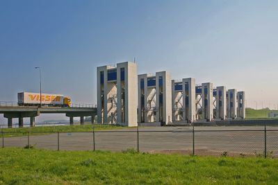El dique representa la capacidad técnica holandesa en la gestión del agua, demostrando el compromiso nacional con la protección mediante infraestructuras.