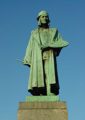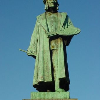 La estatua representa al pintor medieval Hieronymus Bosch, creador de El Jardín de las Delicias e influencia para numerosos artistas en Europa.