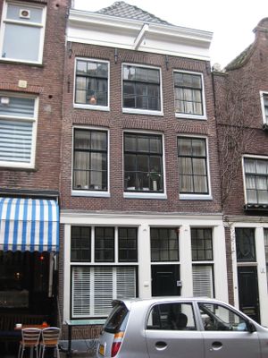 Pand met gevel onder rechte lijst waarboven een schilddak, building in Amsterdam, Netherlands