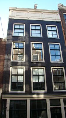 Pand met gevel onder rechte lijst met consoles, building in Amsterdam, Netherlands