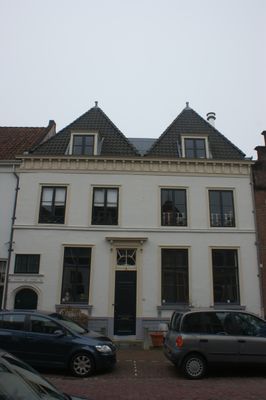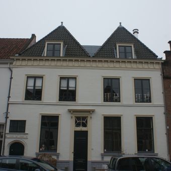 Pand met gepleisterde gevel met dubbel zadeldak en rechte kroonlijst, building in Leiden, Netherlands