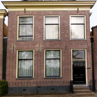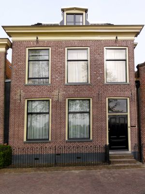 Pand met eenvoudige lijstgevel met forse lijst en dakkapel met vleugelstukken, building in Steenwijkerland, Netherlands