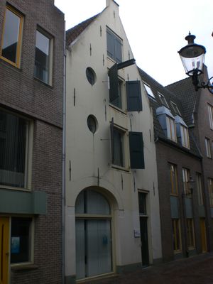 Die Regenbarge. Huis met gepleisterde afgeknotte topgevel. Pakhuis