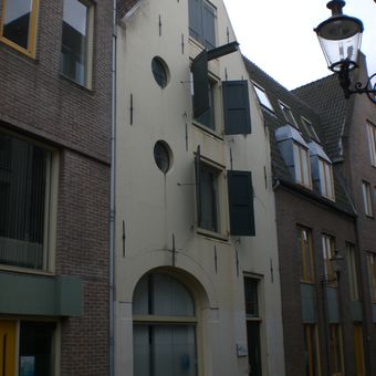 Pand met rococo-lijstgevel op plint. Bijbehorend pand afgebroken. Lijst voorzien van consoles; vensters met strekken en geprofileerde natuurstenen dorpels. Toegang tot werkruimte