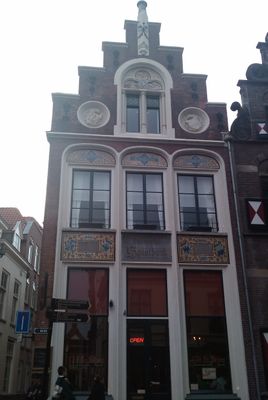 Die Regenbarge. Huis met gepleisterde afgeknotte topgevel. Pakhuis