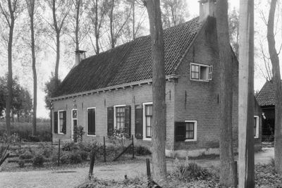 Lage arbeiderswoningen onder een rechte kroonlijst, zadeldak, Rijksmonument op Langbroekerdijk A 103