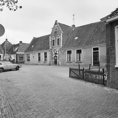 Eenvoudig pand met stervormig bovenlicht boven de deur onder zadeldak tegen puntgevel met vlechtingen en daklijsten