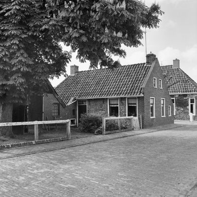 Breed huis onder met Friese pannen gedekt schilddak met hoekschoorstenen