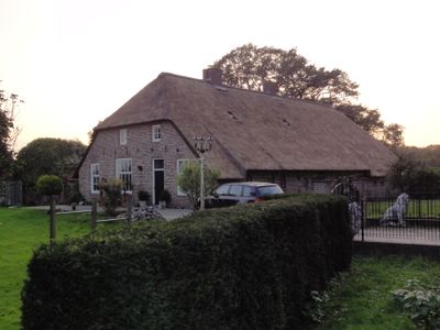 Boerderij met gepleisterd woonhuis onder rieten schilddak