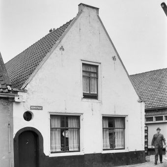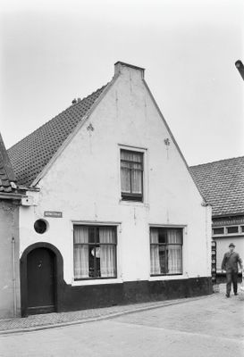 Pand met gevel met getande kroonlijst, houten deuromlijsting