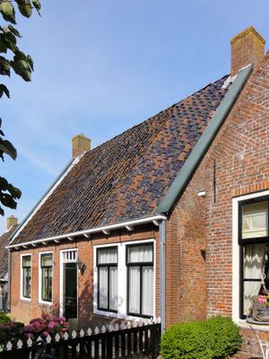 Boerderij met woonhuis tegen topgevel met zesruitsvensters