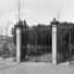 Naast de kerk het toegangshek tot het kerkhof met twee hardstenen hekpijlers,