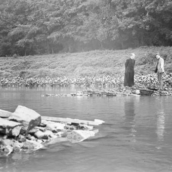 Remnants castle Elsloo, monument of the remnants of the former castle in the Maas near Elsloo, Netherlands