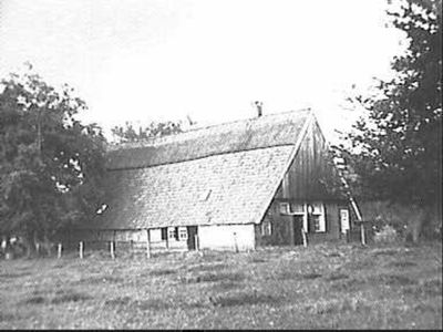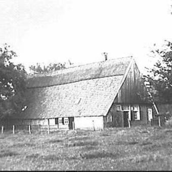Boerderij, grotendeels in vakwerk, met houten topgevels, die iets overkraagd zijn. Achterbaander in underschoer