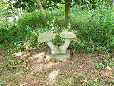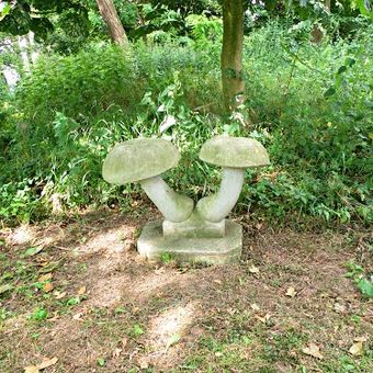 Bingerden: twee paddenstoelen op sokkel, Rijksmonument op Bingerdenseweg bij 21