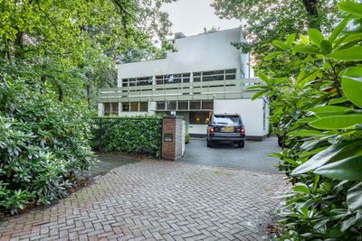 In baksteen opgetrokken, witgepleisterd, vrijstaande, vlak gedekt woonhuis, house in Breda, Netherlands