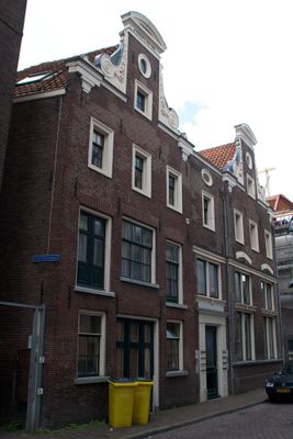Pand met twee halsgevels met gebeeldhouwde vleugelstukken en gebogen frontons en met gewijzigde onderbouw, building in Zwolle, Netherlands