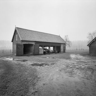 Traditionele, gedeeltelijk open wagenschuur op rechthoekige plattegrond, Rijksmonument op Eerste Verkorting 10
