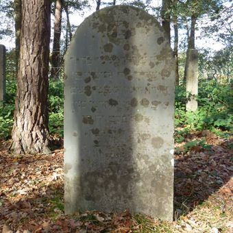 Joodse Begraafplaats: hardstenen staande grafmonument met een gelobde top en een inscriptie in de Hebreeuwse taal, Rijksmonument op Kemmer ong