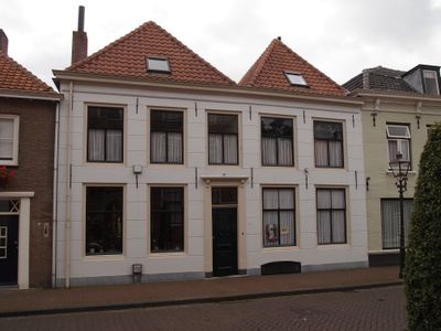 Vijf traveeën breed pand met gepleisterde lijstgevel, building in Sluis, Netherlands